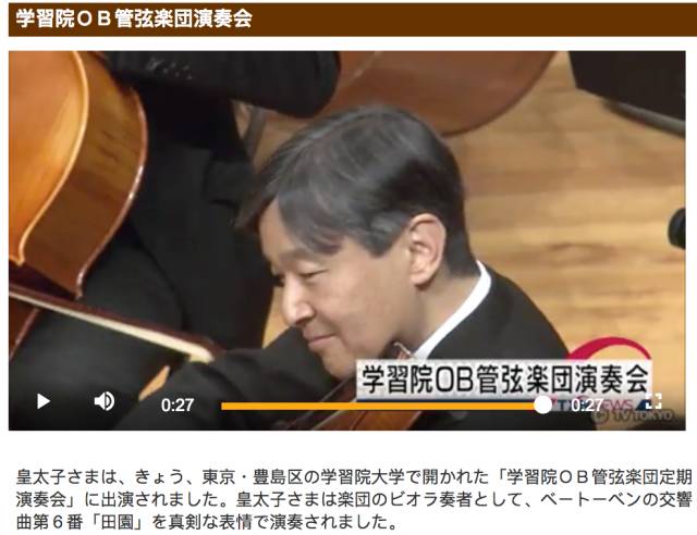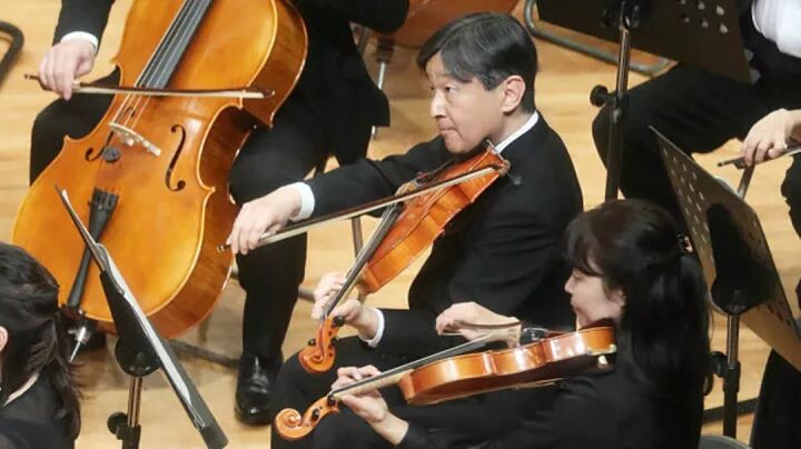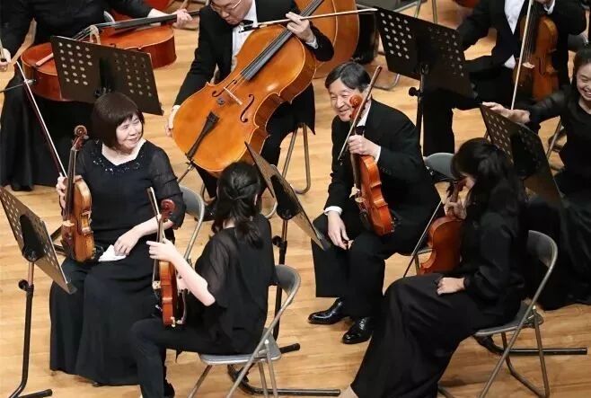 图中正在全神贯注拉奏中提琴的男子不是普通人,他是如今日本皇太子德仁亲王,也是即将即位日本第126任天皇的皇储。