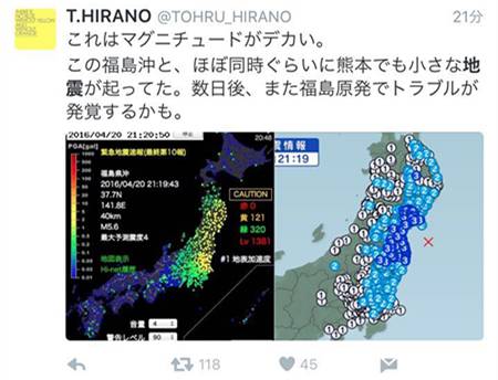 日本推特上马上开始了各种转发...很多人也开始联想前阵子的熊本地震...