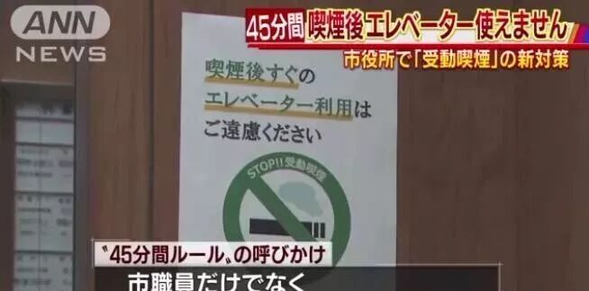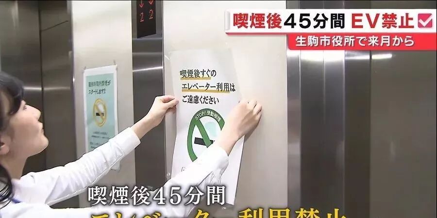 4月1日起,政府职员在吸烟后45分钟内不得乘电梯,