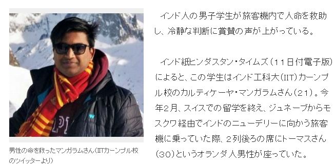 照片中的男子来自印度,是一名21岁的工科大学生,今年2月乘坐从日内瓦飞往印度新德里的航班,坐在他前面的一位荷兰乘客糖尿病突然发病,需要紧急注射胰岛素,否则会有生命危险,然而却找不到可以使用的胰岛素注射器。