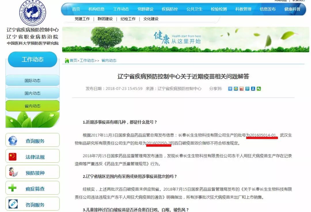 01 近期涉事疫苗有哪几种,都是什么批号? 根据2017年11月3日国家食品药品监管总局发布信息:长春长生生物科技有限公司生产的批号为201605014-01、武汉生物制品研究所有限责任公司生产的批号为201607050-2的百白破疫苗效价指标不符合标准规定。 2018年7月15日国家药品监督管理局发布通告,发现长春长生生物科技有限责任公司冻干人用狂犬病疫苗生产存在记录造假等严重违反《药品生产质量管理规范》行为。 02 辽宁省辖区范围内有采购或使用涉事疫苗批次的吗? 经核实,上述两批次百白破疫苗未供应我省。2018年7月15日国家药品监督管理局发布的《关于长春长生生物科技有限责任公司违法违规生产冻干人用狂犬病疫苗的通告》明确指出,所有涉事批次狂犬病疫苗未出厂和上市销售。 03 儿童接种过百白破疫苗是否还会患百日咳、白喉、破伤风? 接种百白破疫苗是预防儿童白喉、破伤风和百日咳的有效措施。按照国家免疫程序,百白破疫苗需接种4剂次,分别于3、4、5月龄和18月龄各接种1剂次,完成4剂次接种的儿童可得到较好的保护效果。相关研究显示,百白破疫苗预防典型百日咳的效力约85%,因此,即使接种了百白破疫苗的儿童,少部分人也有可能罹患百日咳。百白破疫苗预防儿童破伤风的保护效力为80-100%,完成4剂次接种可为青少年期提供有效保护。百白破疫苗对白喉的保护效果较好,接种3剂次以上的疫苗保护效力约为95%。我省已连续19年没有白喉病例的报告,百日咳和新生儿破伤风的每年发病数也已降至个位数。 04 如何查询疫苗接种信息? 通过查看儿童预防接种证或咨询接种单位。预防接种证也是儿童入托、入学、出国留学等的凭证,请妥善保管。